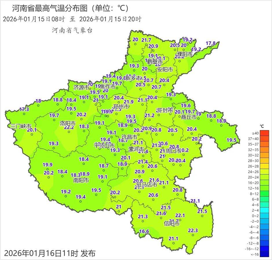 【大河财立方消息】河南气象消息,降温启动!1月15日,全省最高气温普遍达到19至22℃,暖如春日。受冷空气影响,1月16日,北部和中东部地区最高气温将降至7至9℃,降幅超过10℃!