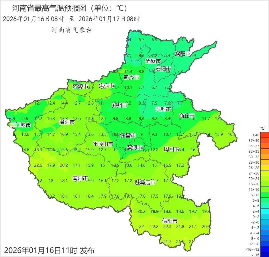 来源:河南省气象台2026年1月16日12时预报
