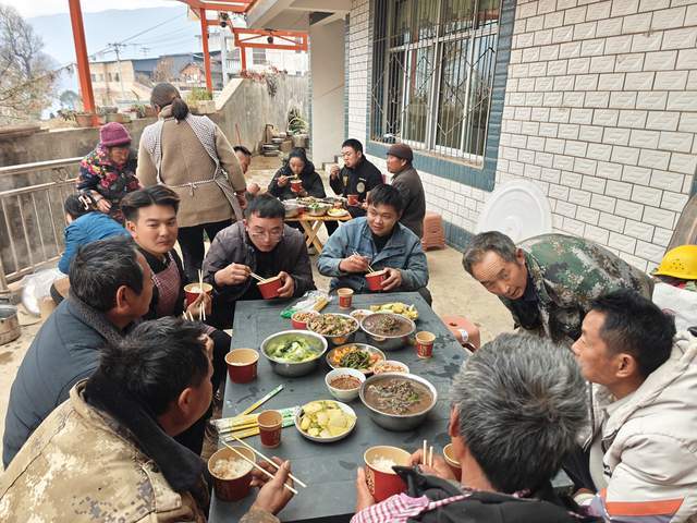 临近中午,院坝里的八仙桌被依次摆开,碗筷整齐摆放。随着“吃饭咯!”的一声吆喝,热气腾腾的菜品被陆续端上桌:酸菜血旺、小炒肉、炒时蔬、凉拌皮蛋……菜品摆满一桌,色彩诱人,香气扑鼻。亲朋好友、邻里乡亲围坐在一起,端起酒杯畅谈家常,夹起一块鲜嫩的猪肉,喝上一碗温热的肉汤,暖意瞬间传遍全身。