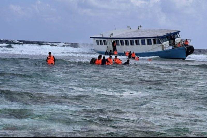 据马尔代夫当地媒体Maldives Voice报道,1月15日上午11点,上述轮渡的确在马富士岛附近的Emboodhoo Reef因引擎故障搁浅。船上72人,包含67名游客、5名船员全部安全撤离,无人受伤。