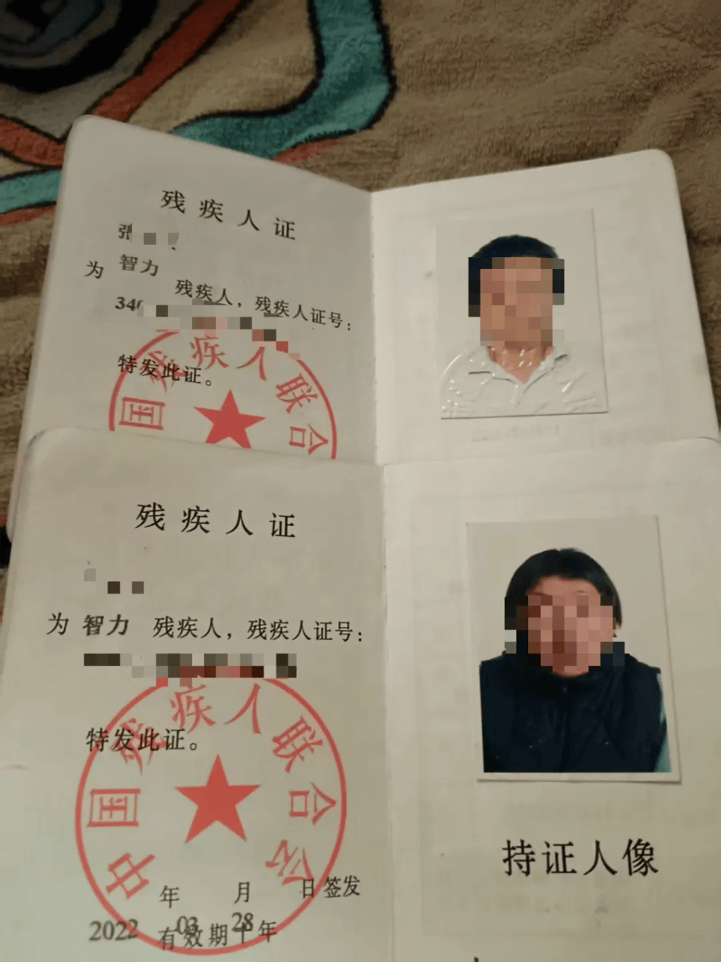 男孩父母的残疾证。本文图片均为受访者供图