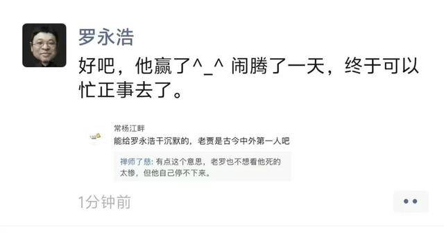 据新黄河,1月16日晚,在贾国龙发表相关公开信后,罗永浩在朋友圈最新发文,“好吧,他赢了。闹腾了一天,终于可以忙正事去了。”