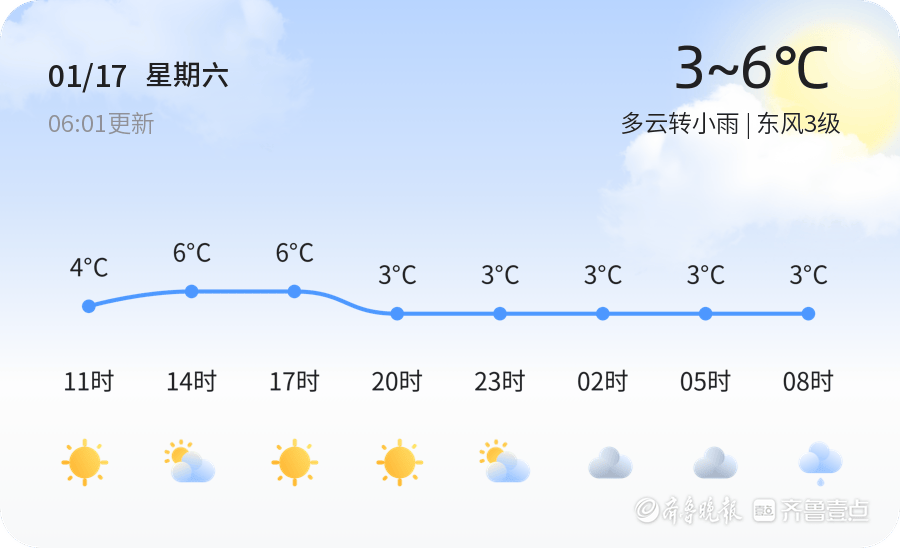 未来三天,枣庄市天气将出现明显变化。明天1月18日,天气为小雨转雨夹雪,气温在-6℃至9℃之间。1月19日,将迎来中雪,气温下降至-11℃至3℃。1月20日,天气转为多云,气温进一步下降至-13℃至-4℃。未来三天内,枣庄市最高气温可达9℃,最低气温为-11℃。此外,枣庄市气象台发布蓝色大风预警,预计今天夜间到明天白天,全市范围内将出现平均风力6级的大风天气。市民需注意防范大风可能带来的不利影响,出行时远离广告牌等易坠落物品。