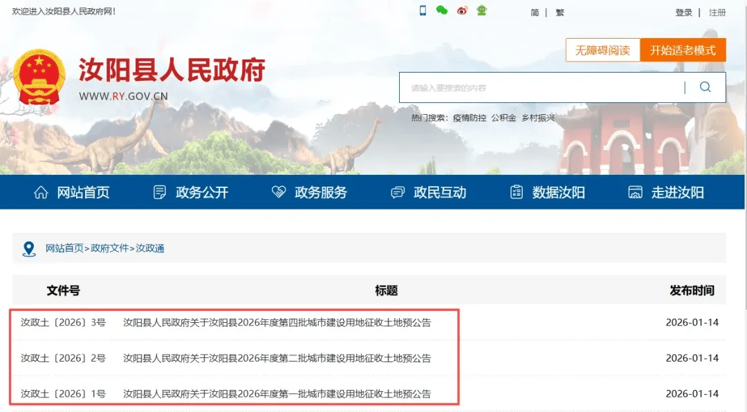 拟征收土地位于汝阳县城关镇范围内,涉及古严村、洛峪村。