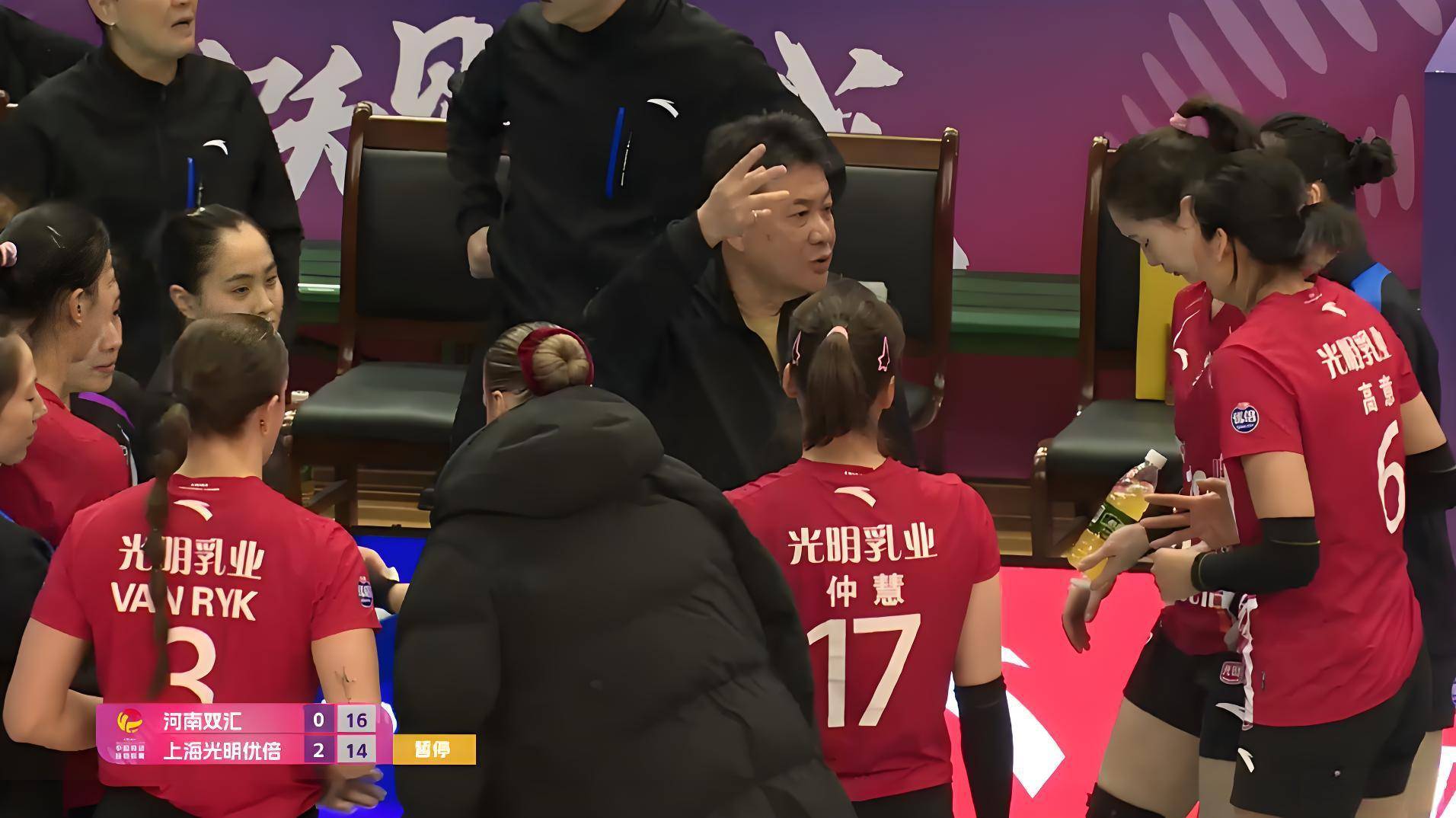 Coach Jiao seemed to be considering the foreign players' needs. In the third set, Shanghai was down 16-14, forcing a timeout. However, a series of crucial first passes at the end of the set proved disastrous. Wang Aoqian got playing time for Shanghai, and in the second set, she scored a point with a serve to the front zone!