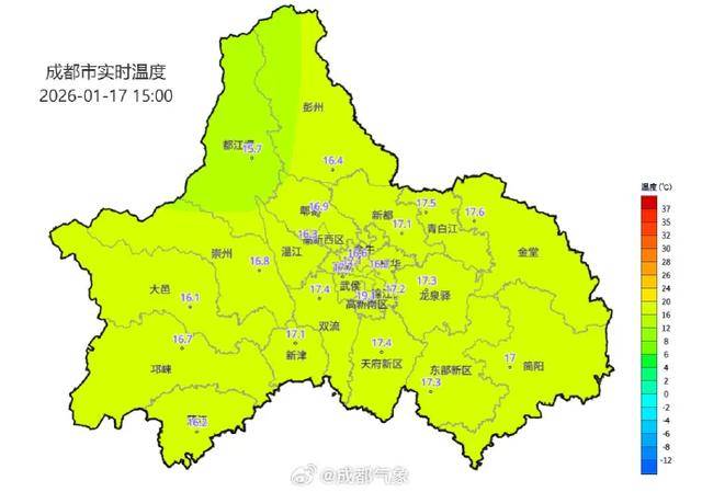 今日暖阳依旧在线,据成都气象,今日15时,全市平均气温在16℃上下。不过需要注意的是,“四九”寒潮来袭,成都即将迎冷暖大反转。
