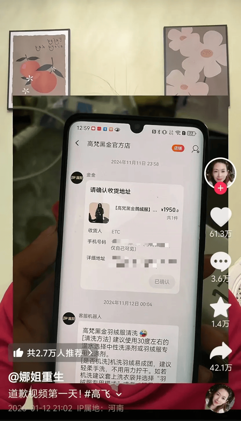 1月12日,河南女子牛娜在抖音发布第一条道歉视频,标题简短而沉重:“我认错,服从判决。”短短数小时后,这条视频播放量破百万,点赞突破50万。