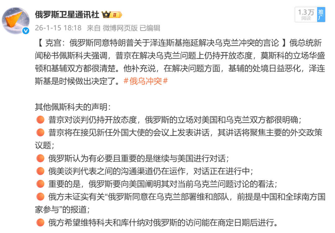 【俄罗斯总统新闻秘书佩斯科夫未证实俄罗斯疑似同意在中国和全球南方国家参与的条件下将在乌克兰部署维和部队的消息。】