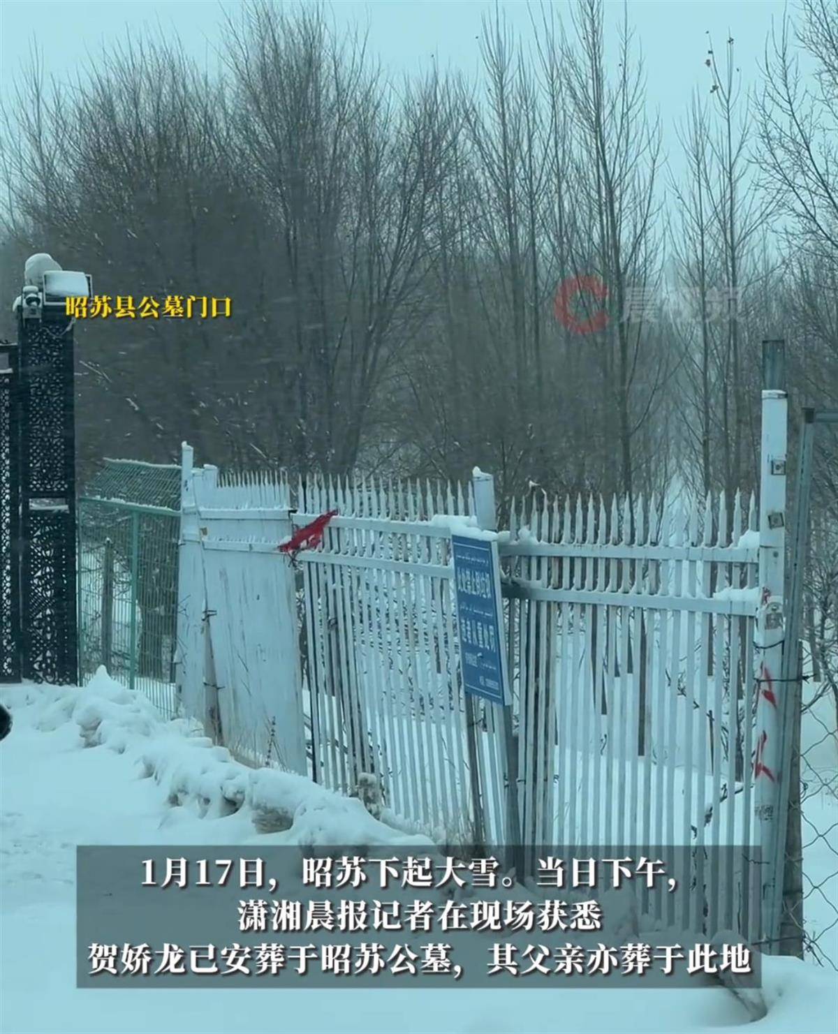 1月17日,新疆昭苏县飘起大雪。据潇湘晨报报道,记者在现场获悉,贺娇龙已于当日下午安葬在昭苏当地的公墓。其父亲亦葬于此地。