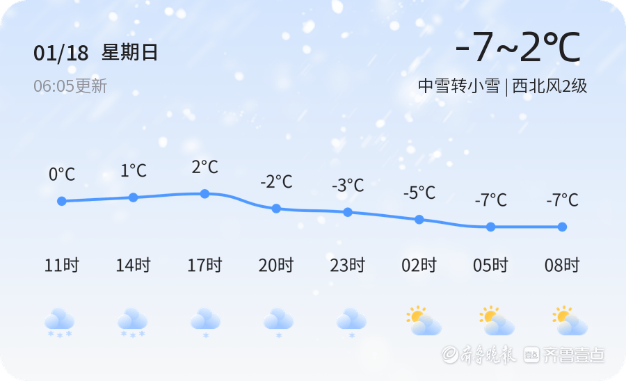 今天是2026年1月18日,农历十一月三十,星期日。泰安市迎来一场中雪天气,气温低至-7℃,最高气温为2℃。目前,全市各区均出现中雪转小雪的天气现象,西北风2级,空气湿度为89%,PM2.5指数为64。市民出行请注意保暖和防滑。