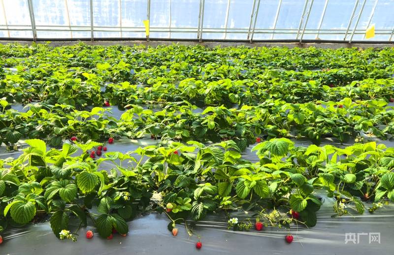 温室大棚中用于采摘体验的品种草莓(央广网记者 吴佳仪 摄)