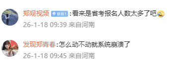 据此前报道,1月11日河南省考报名系统也出现过“崩溃”情况,并冲上了当天热搜第一。