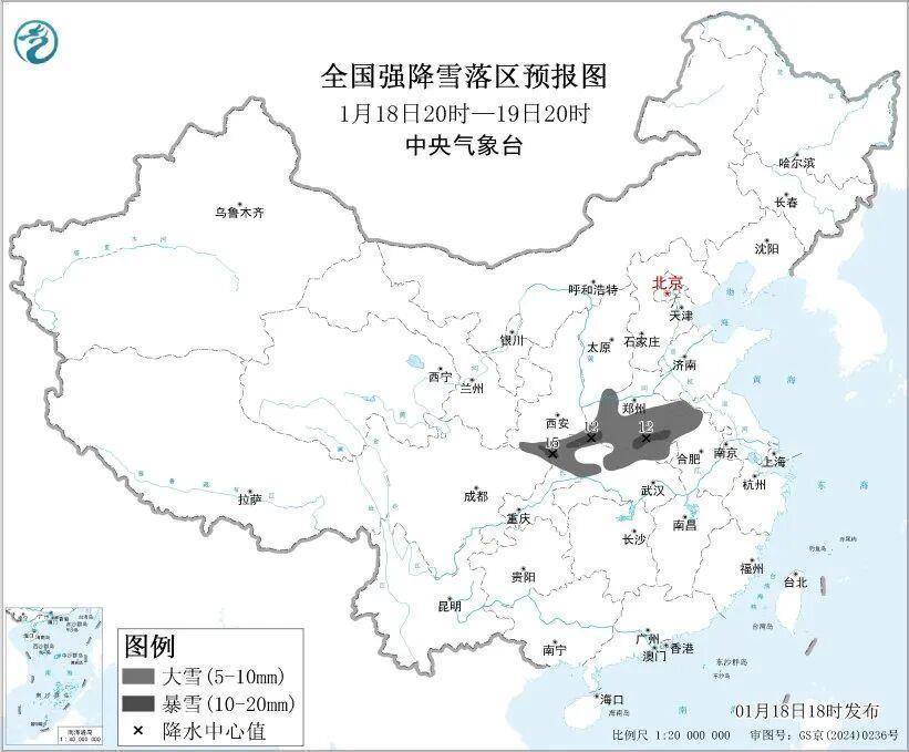 18日18时,中央气象台发布暴雪蓝色预警,预计18日20时至19日20时,陕西南部、河南中南部、安徽北部、湖北西北部等地部分地区有大雪,其中,陕西南部、河南南部和西部、安徽西北部、湖北西北部等地部分地区有暴雪;上述部分地区新增积雪深度4~8厘米,局地可达10厘米以上。
