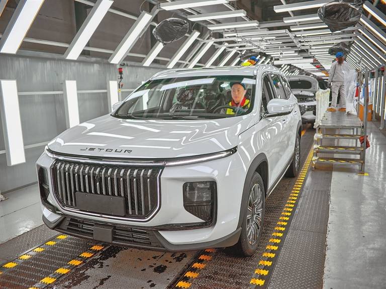 图② 技术工人在奇瑞汽车河南有限公司的总装生产线上忙碌。本报记者 史长来 摄