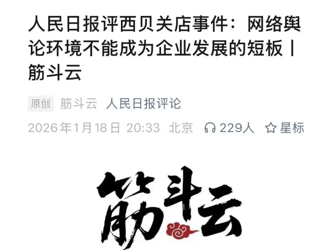 文章直指:一场网络大V与知名企业人士的网上纷争,以西贝宣布“将关闭全国102家门店”、两人新浪微博账号均被禁言暂告一段落,但深层次的思考不应该缺席。透过西贝这起事件,人们痛心的远不止于其“4000名员工将面临转岗或失业、超5亿元亏损”的损失,更忧心于为何一条社交媒体发文就能让一家经营38年、拥有数百家门店的企业陷入发展困境?