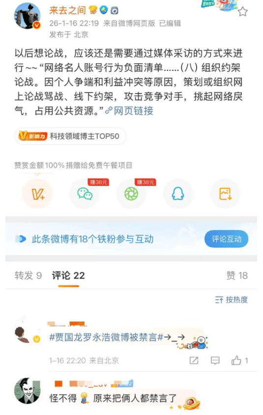 贾国龙罗永浩微博双双被禁言 平台出手叫停“十点见”