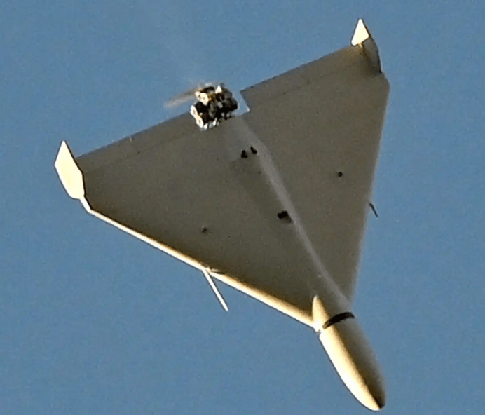 俄罗斯从2022年下半年从伊朗引进的“见证者-131/136”远程自杀式无人机(又被称为巡飞弹),然后进行了国产化——“天竺葵-2”自杀式无人机。“天竺葵”-2无人机是伊朗“见证者”-136型无人机的俄罗斯生产版本,外形和尺寸几乎相同,采用三角翼,尾部配备了一台活塞式发动机,碳纤维机身结构,内部有金属支撑,战斗部重约90公斤,最大时速在180公里左右,作战范围1500公里-2000公里。无人机采用惯导+卫星导航,能对预定坐标的固定目标实施攻击。进入2025年后,随着乌军反无人机战力的提升,俄军开始为“天竺葵-2”挂架R-60或“针-S”空空导弹,用于对付执行空中拦截任务的直升机或固定翼飞机,为了满足对付机动目标的需求,部分型号还配备了摄像头,具备更强的精确打击能力。