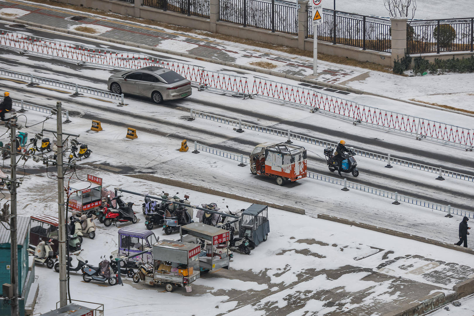 ▲1月19日,河南郑州,城市街头出现积雪及道路结冰 图据视觉中国