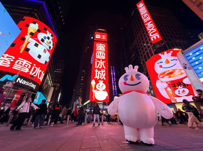 北京时间12月25日,蜜雪冰城美国纽约双店齐开,来自河南的雪王带着冰淇淋与茶霸屏纽约时代广场。截至目前,蜜雪冰城在全球门店数量已经超过5.3万家,北美现制茶饮发展潜力大,未来蜜雪冰城将持续深化美洲市场布局。
