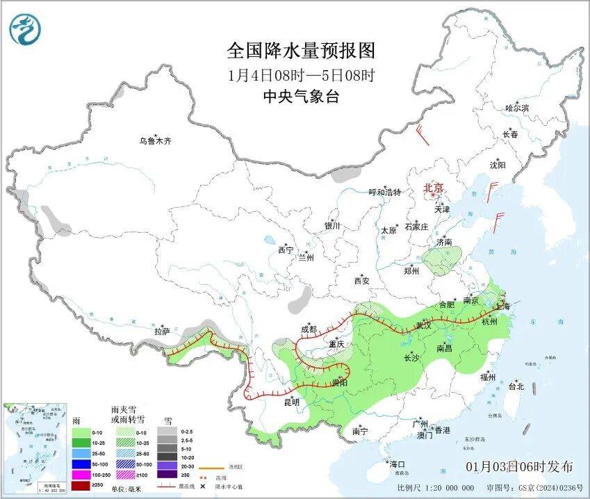 1月5日(周一):阴有短时小雨或雨夹雪转阴到多云,4~9度
