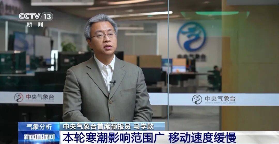 中央气象台首席预报员 马学款:本轮寒潮主要是由于西伯利亚地区强盛的冷高压自西向东、自北向南影响我国大部地区。冷空气的势力比较强、影响范围比较广。