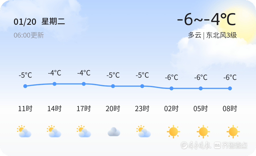 今天是1月20日,星期二,农历十二月初二,青岛市迎来大寒节气。今日天气多云,气温介于-6℃至-4℃之间,东北风3级,空气湿度63%,PM2.5浓度为22,属于良好水平。大寒是二十四节气中的最后一个节气,标志着冬季的结束和春天的即将来临。此时天气寒冷,市民需注意保暖,谨防感冒。由于近期降雪和低温影响,崂山、城阳等地发布了道路结冰橙色预警,提醒市民出行时注意交通安全,减速慢行。建议市民今日出行时佩戴好防寒装备,尽量选择公共交通工具,避免在积雪和结冰路面行走或驾车。此外,大寒节气也是进补的好时机,市民可适当增加热乎食物的摄入,以抵御严寒。
