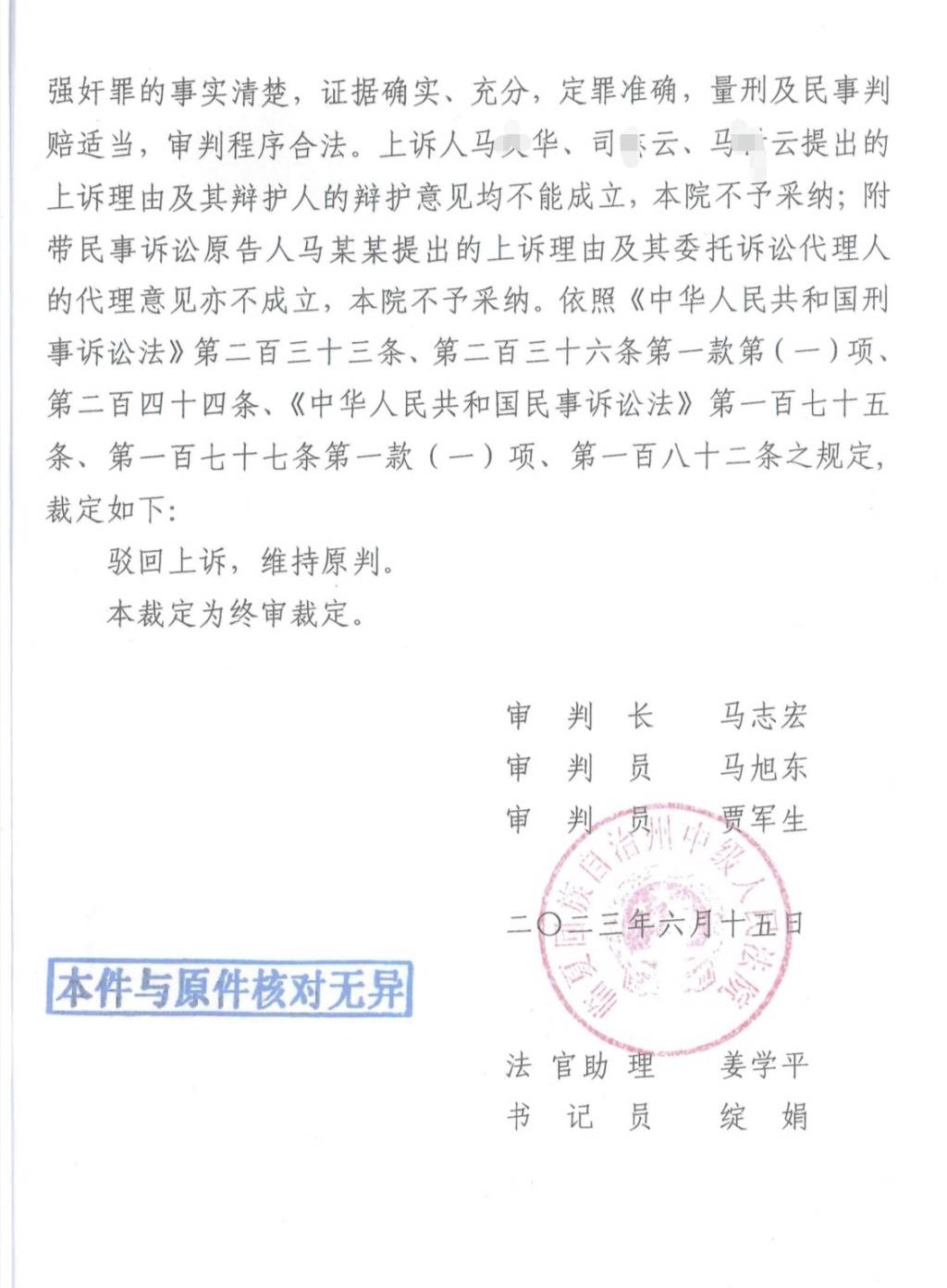 临夏州中院作出的二审裁定(部分)