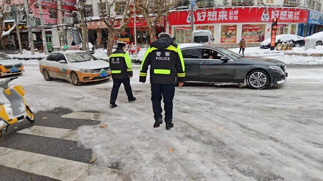 民辅警的脚步踏遍城区:车辆打滑,他们合力助推;老人孩童过马路,他们主动搀扶,用身躯隔开车流,护送平安通过斑马线。车流在他们的引导下有序行进,行人在他们的守护下安全往来。