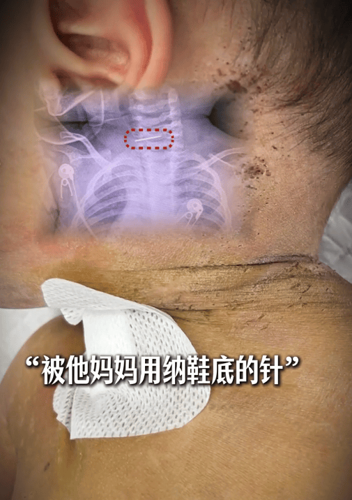 记者从视频中看到,这名孩子的脚部、头部、躯干等多处布满针孔,且有黑色结痂。隋医生称此次手术难度大。其一是孩子父母不清楚针的具体形态,隋医生从网上搜索资料注意到,纳鞋底的针前方有倒刺,需要考虑顺向还是逆向拔除,如果有倒刺顺向拔除可能钩到其他组织,存在风险。其二是孩子年龄太小,颈椎发育不成熟,手术风险远高于成人,同时针尾紧邻颈动脉,如果在手术中损伤可能危及生命。“我们会诊的当天完善了检查后,顺利完成了这个手术。孩子当天还出现了高热的情况,针是带铁锈的,术后三四天孩子体温已经降下来了,已转出ICU。”隋医生在视频中称,目前已经报警,当地警方正在处理。