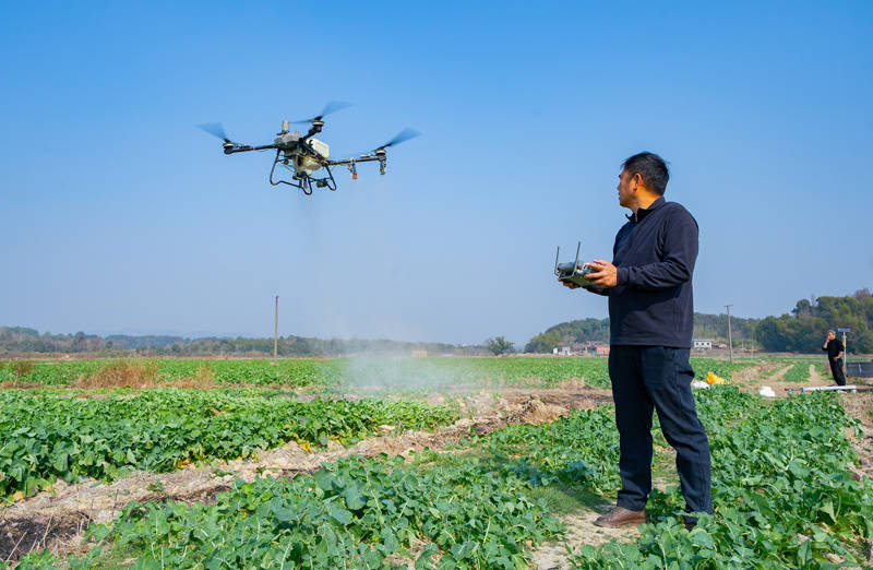 2026年1月18日,江西省金溪县双塘镇柏林村委会北斗村的种养大户、乡村农艺师李全平在寒潮即将来临之际,正组织专业人员在全平家庭农场千亩油菜地,采用无人机追施冬肥,以进一步促进油菜根系发育,增强油菜抗寒能力。近年来,金溪县强化党建引领,进一步加大人才强县和科技兴农力度,一批批新型农民正利用农业机械化和数字科技从事着农业生产和经营。(李山冕摄影报道)