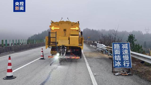 受寒潮天气持续影响,京珠北高速高海拔区域最低气温已降至零下2℃,云岩路段出现路面结冰现象。