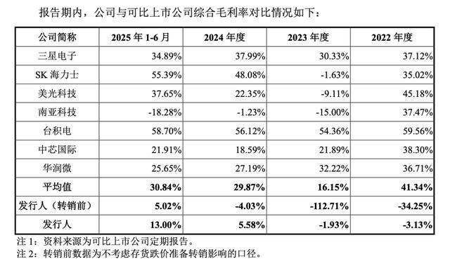 长鑫科技与半导体行业可比上市公司毛利率对比。图/招股书