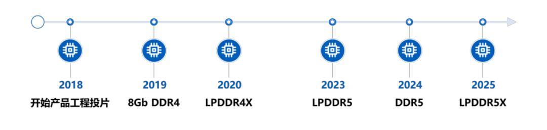 2019年9月,其自主研发的首颗DRAM芯片——8Gb DDR4——正式量产。其后,随着LPDDR4X、LPDDR5、DDR5、LPDDR5X产品相继问世,其已实现对主流DRAM产品的覆盖,成长为国内最大的DRAM厂商。