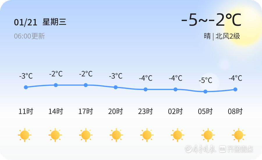 今天是2026年1月21日,农历十二月初三,青岛市迎来寒潮天气,全市气温较低,最高气温为-2℃,最低气温为-5℃。目前,青岛市部分地区已发布低温黄色预警和寒潮黄色预警。今天天气晴朗,北风2级,空气湿度为57%,空气质量状况良好。建议市民注意防寒保暖,减少不必要的外出,出行时请做好防护措施,谨防感冒。