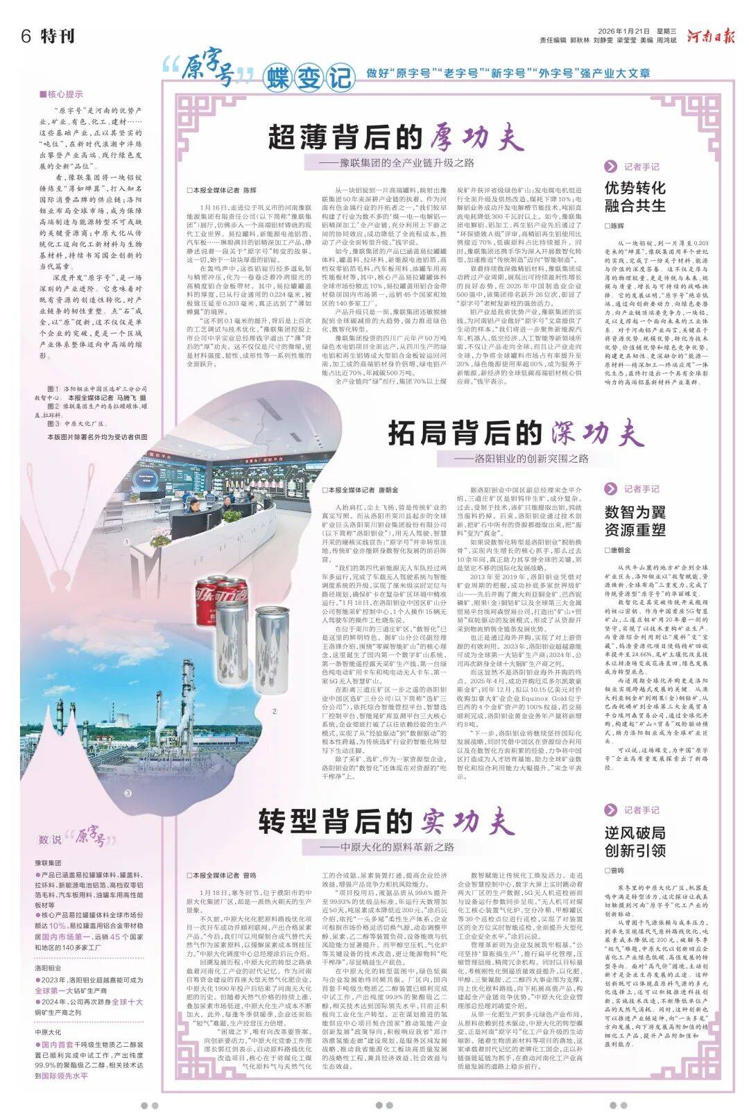 看,豫联集团将一块铝锭锤炼至“薄如蝉翼”,打入知名国际消费品牌的供应链;洛阳钼业布局全球市场,成为保障高端制造与能源转型不可或缺的关键资源商;中原大化从传统化工迈向化工新材料与生物基材料,持续书写国企创新的当代篇章。