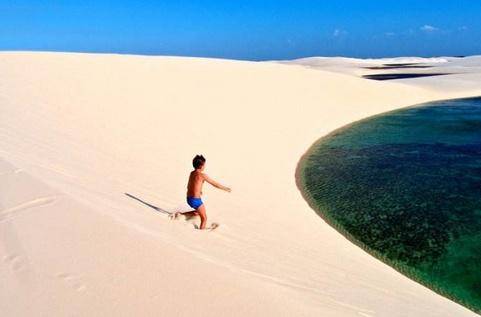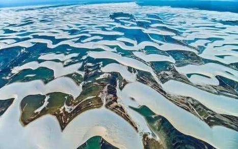 看到这里,大家都不太相信。毕竟叫做沙漠不是以黄沙为主吗?这就是它的神秘之处了。这个沙漠就是拉克依斯·马拉赫塞斯沙漠,在巴西的东北部,巴西规模最大的岸边沙丘就在于此。名字中的“拉克伊斯”在葡萄牙语中是床单的意思,床单和沙漠有什么关系吗?你来到这里你会发现这名字使用得非常贴切。