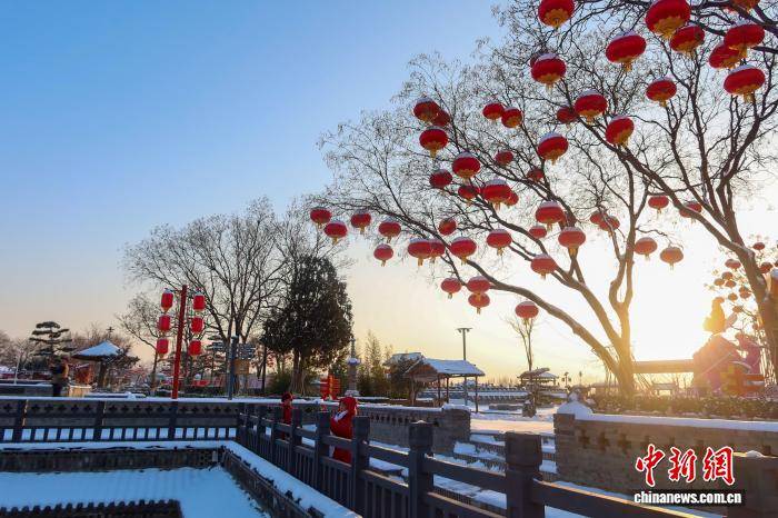 春节临近,河南三门峡陕州地坑院银装素裹,一盏盏红灯笼点缀古朴院落,与皑皑白雪相映成趣,浓浓年味扑面而来。图为1月20日,雪后地坑院年味浓。 孙猛 摄