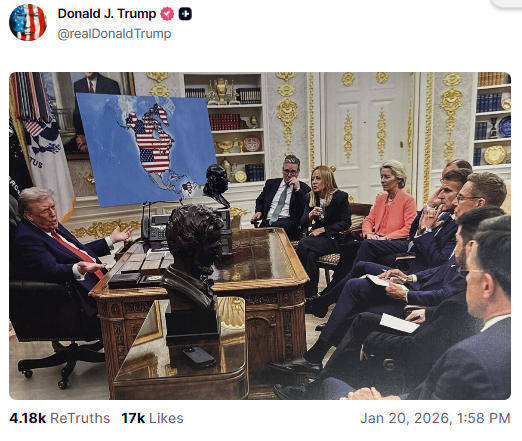 特朗普威胁“吞并”加拿大和格陵兰岛社交媒体截图