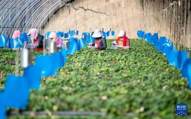 2026年1月15日,农民在位于宁夏银川市贺兰县习岗镇的新平村设施园区草莓温棚内采摘草莓。新华社记者 杨植森 摄