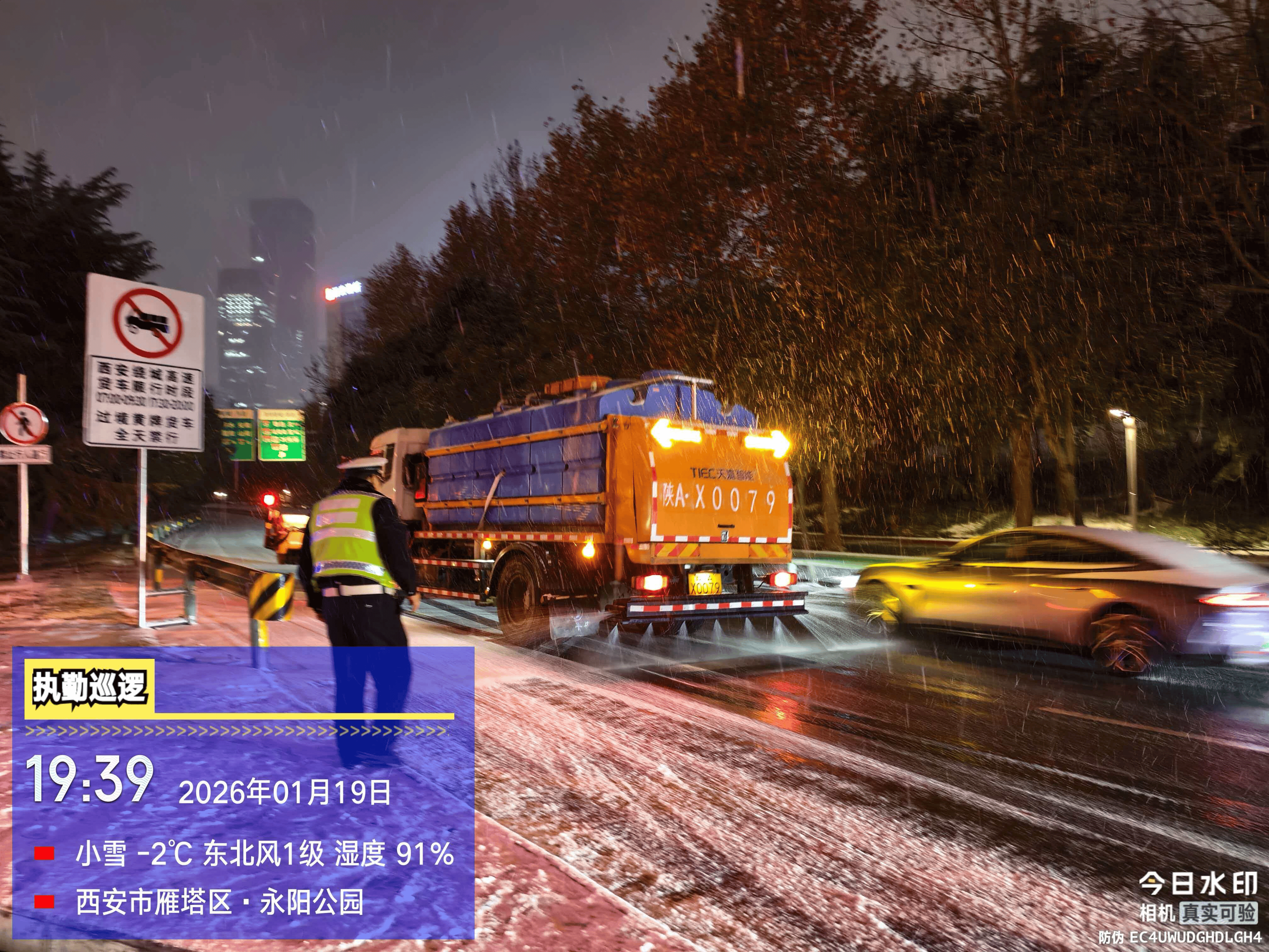 1月19日,面对辖区普遍降雪、道路交通形势严峻的挑战,西安公安交管高新大队迅速启动应急指挥体系,全面投入冰雪天气交通保障工作。