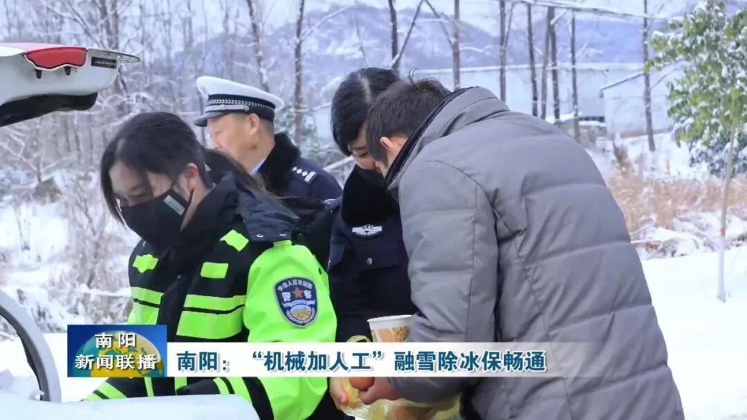 在312国道上,桐柏交警联合公路部门,对因路面结冰、打滑被困的100多辆车,迅速开展救援处置,在关键路段、路口设置安全警示标志,耐心引导过往车辆减速慢行、保持安全车距,全力防范交通事故发生。在疏通交通的同时,还逐车给受困司机送去了油条、豆浆、茶鸡蛋等暖心快餐,让他们在寒冬中的旅途感到温暖。