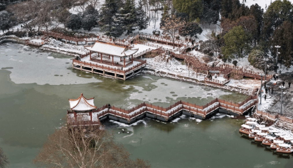 一场大雪过后,空中俯瞰平顶山这座城市,熟悉的街道也变了模样,处处银装素裹,目之所及皆是如画雪景。