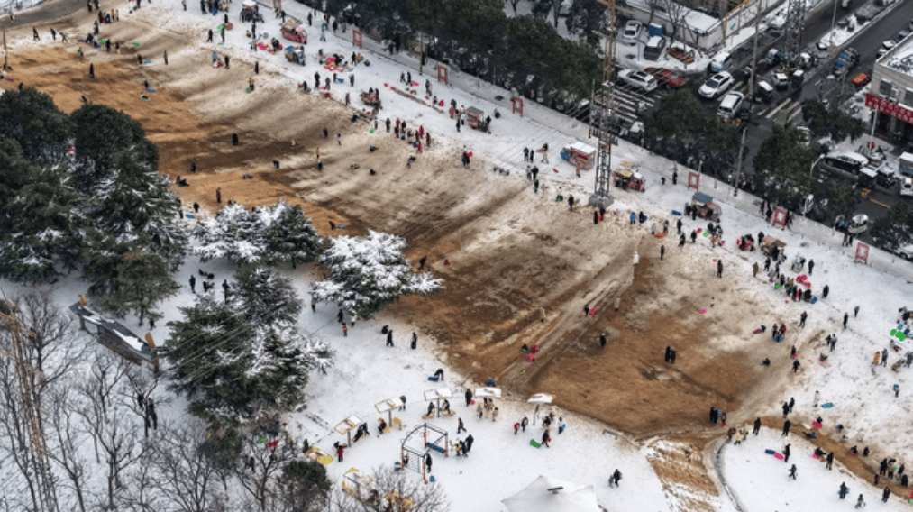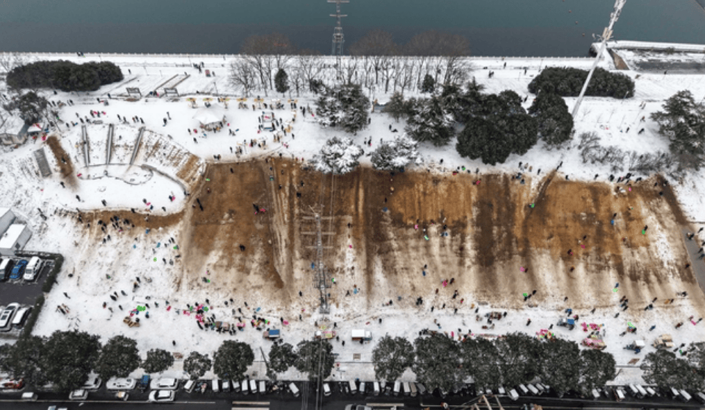 空中俯瞰河滨广场雪后美景