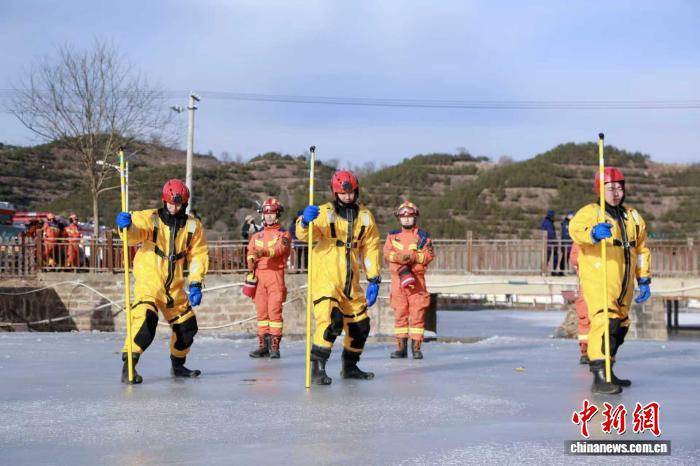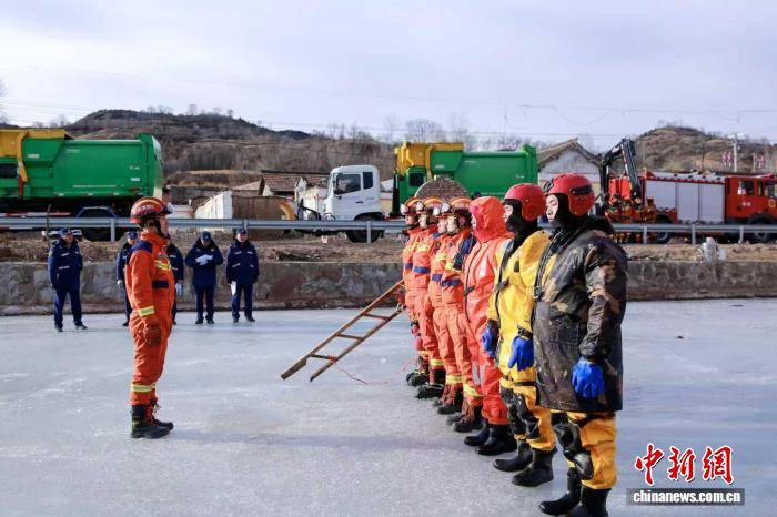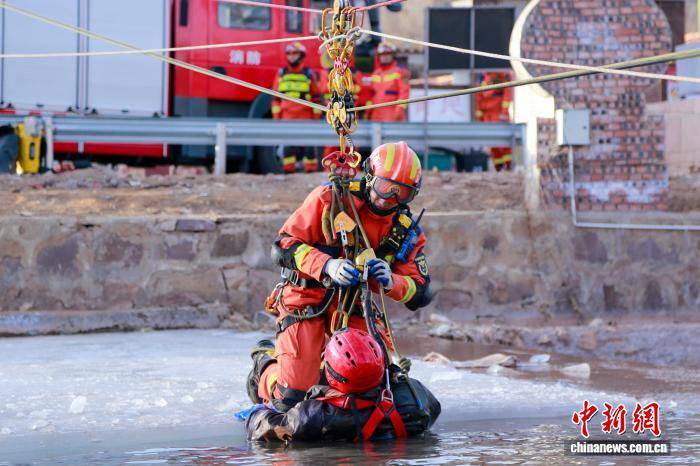 中新网晋中1月21日电 题:山西晋中:消防员极寒天气演练飞渡“孤岛”破冰救人