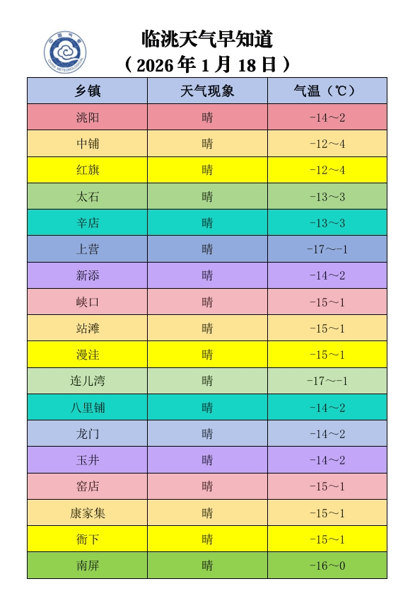 临洮天气早知道(2026年1月18日)