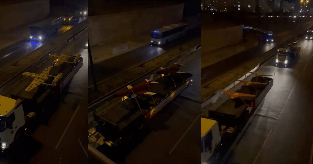 ▲载有作战无人机的卡车在夜间穿过伊朗城市