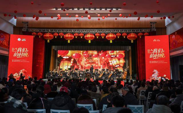 ↑ 这是1月22日在周巷镇万安庄村文化礼堂拍摄的“我们的村晚”交响音乐会演出现场。本次演出首次以交响音乐会的形式呈现给乡村百姓。