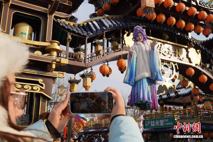 1月21日,河南开封万岁山武侠城以其NPC(非玩家角色)互动与各类实景场景,为游客带来沉浸式体验,吸引不少人前来合影打卡。近来,各大景区的NPC成为网络“顶流”,为文旅体验增添了更多趣味与沉浸感。图为NPC表演吸引游客拍照留念。夏青华 摄