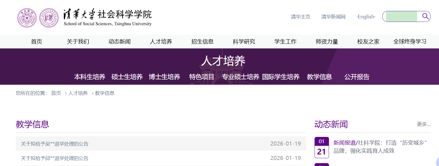 1月19日,清华大学官网发布公告:对两名博士研究生作出予以退学处理。