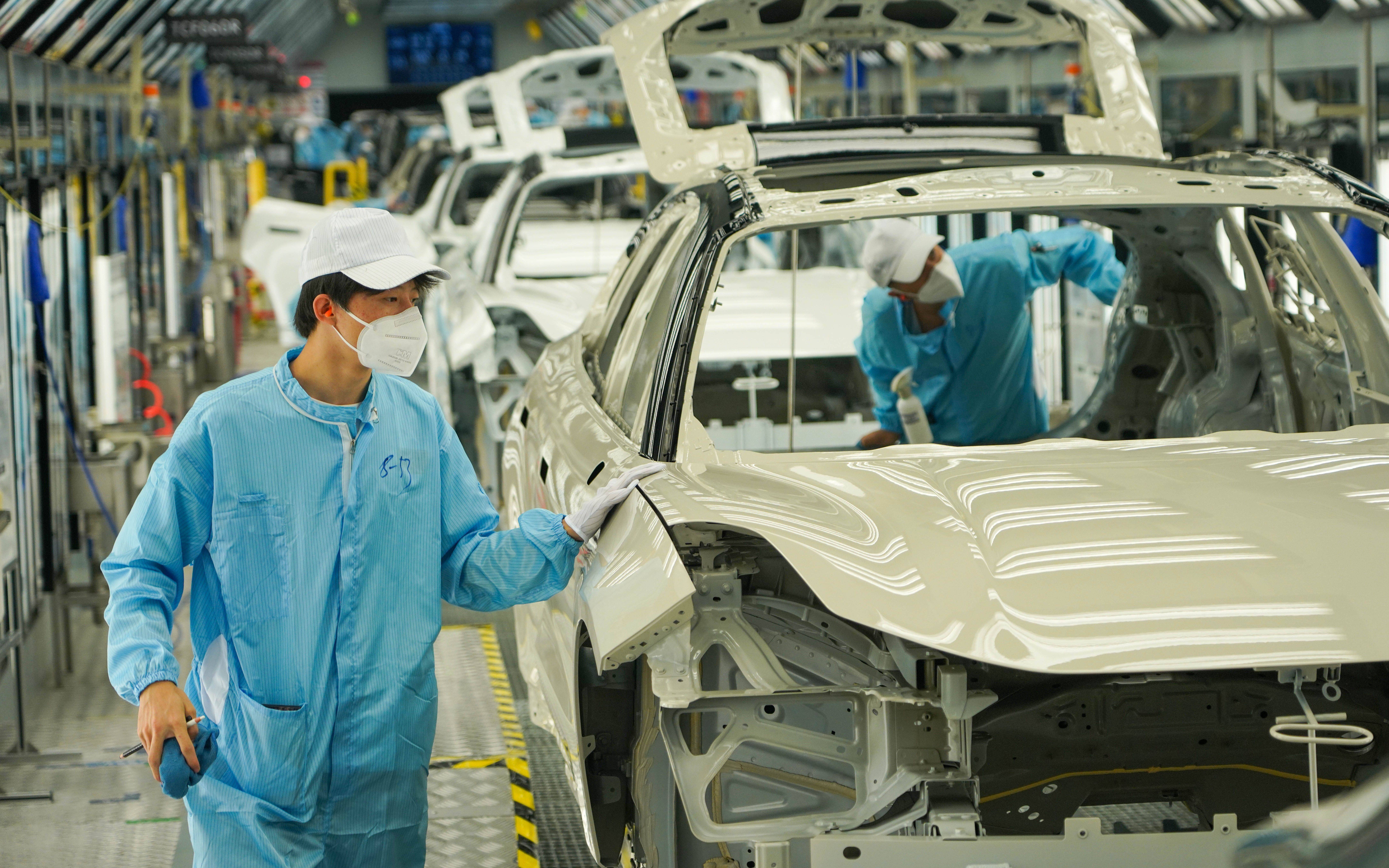 2024年11月,浙江宁波前湾新区某品牌汽车智慧工厂,新能源汽车生产线一片忙碌。图/IC photo